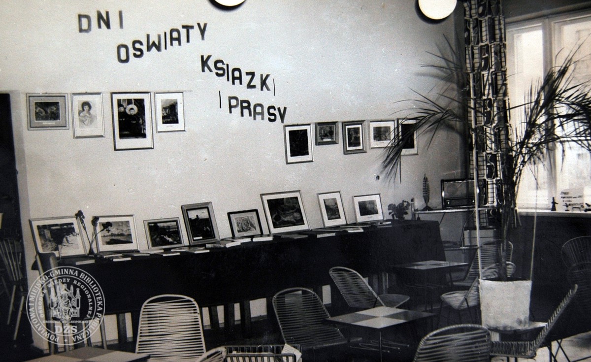 Wystawka książek z okazji Dni Oświaty Książki i Prasy. Biblioteka mieściła sie w lokalu obecnej Księgarni (Firma Maruszewski) przy ul. Szerokiej.