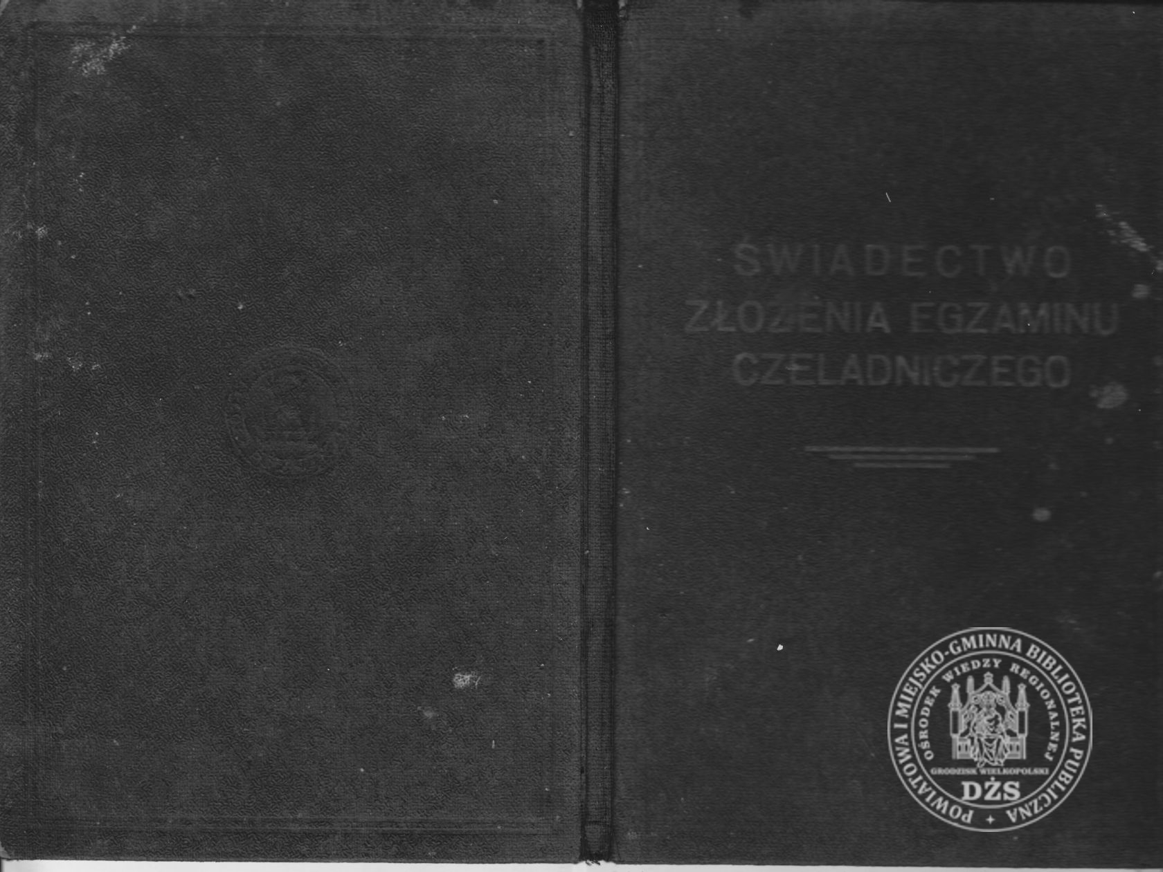 Świadectwo złożenia egzaminu czeladniczego. Okładka.
