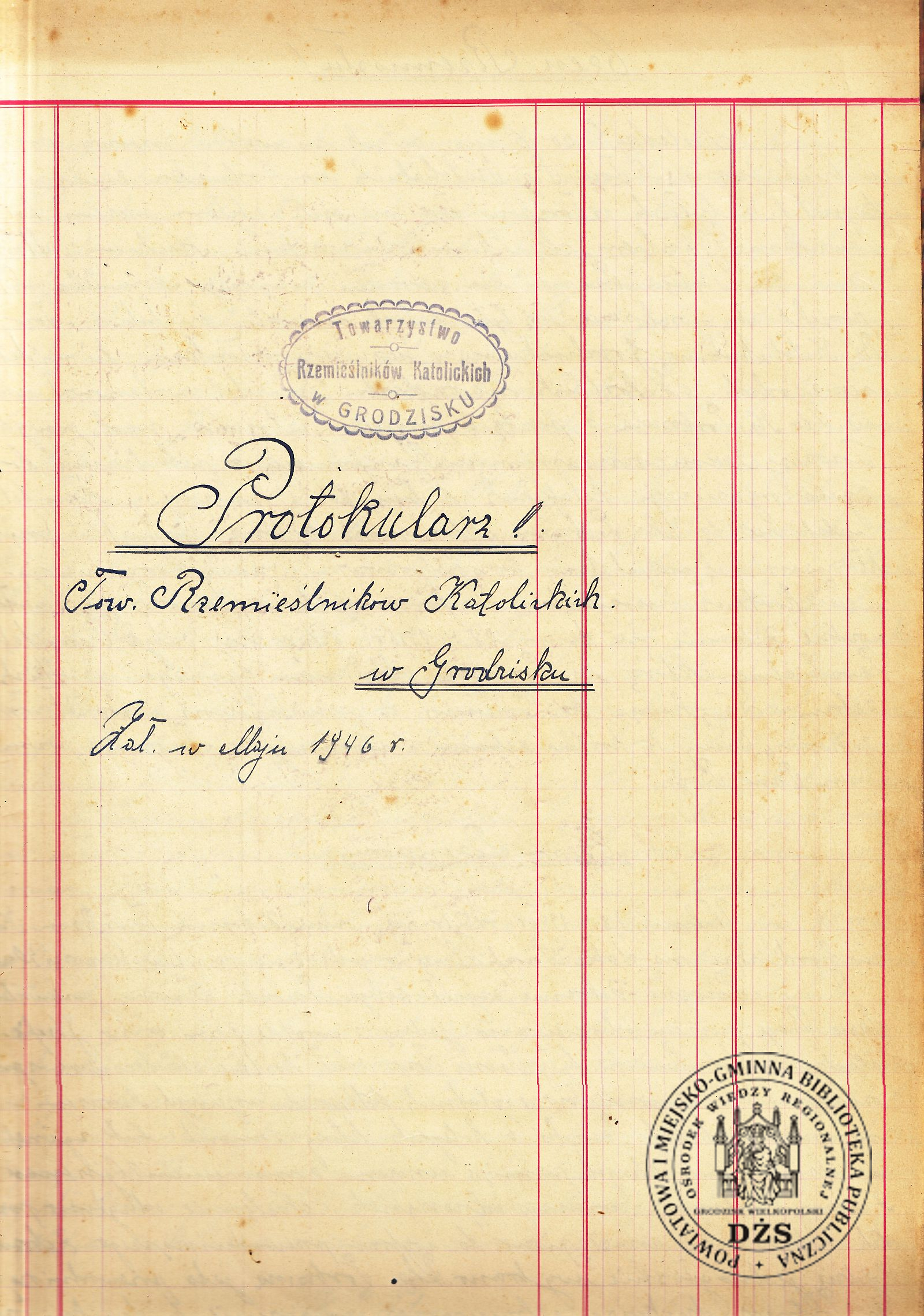 DŻS 346 Protokularz Towarzystwa Rzemieślników Katolickich w Grodzisku