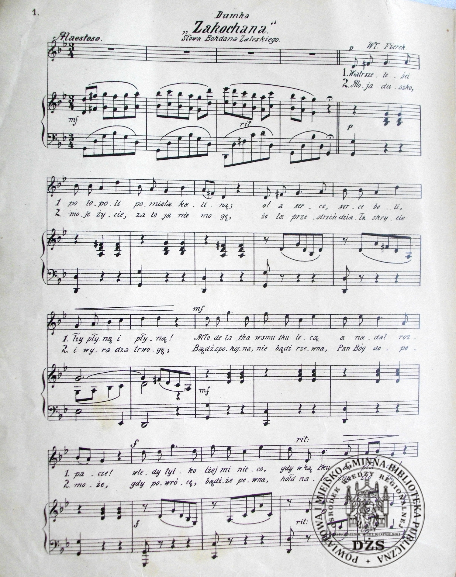 Dumka "Zakochana". Nuty kompozycji Władysława Fierka