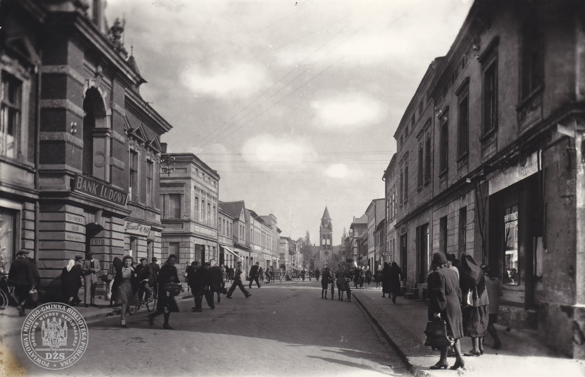 Ulica Szeroka. Bank Ludowy. Kościół p.w. Najświętszego Serca Pana Jezusa.