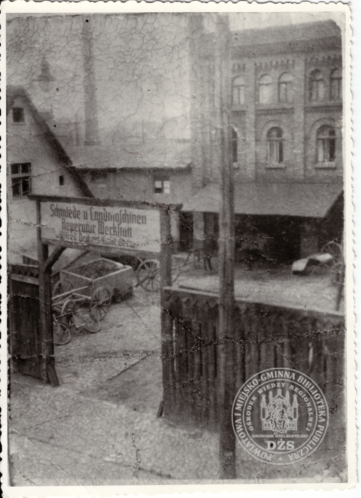 Ulica Garbary w Grodzisku Wielkopolskim. Widok na kuźnię Stanisława Adamczewskiego. W czasie okupacji zakład przejeli Niemcy.