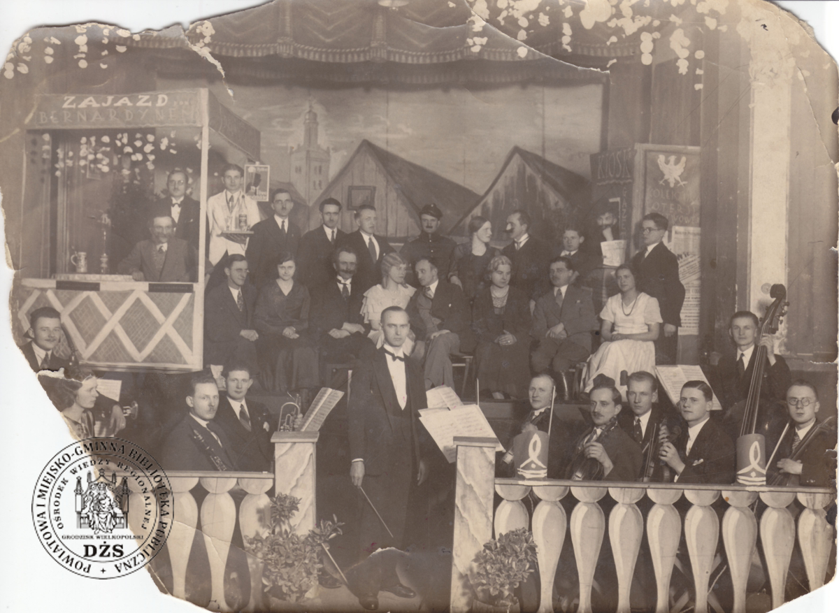 Opis na zdjęciu: Pamiątka pierwszego wieczoru koncertowego. Wystawienie fraszki scenicznej St. Moniuszki "Loterja" w dniu 15 kwietnia 1934 r. przez Kółko Muzyczne im. Ignacego Paderewskiego w Grodzisku.
