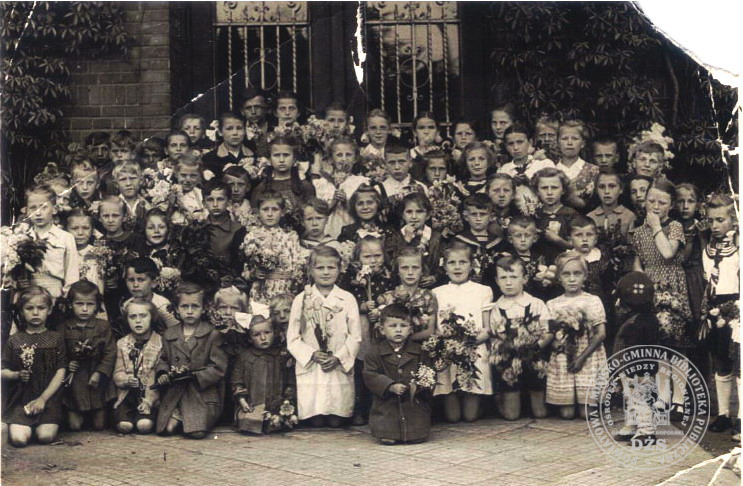 Zdjęcie przedstawia najprawdopodobniej grupę dzieci uczestniczących w majowych nabożeństwach.