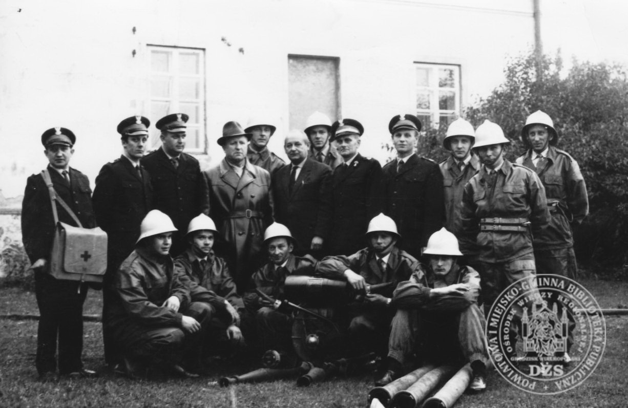 Na zdjęciu prawdopodobnie czlonkowie Zakładowej Straży Pożarnej Grodziskiej Spółdzielni Pracy