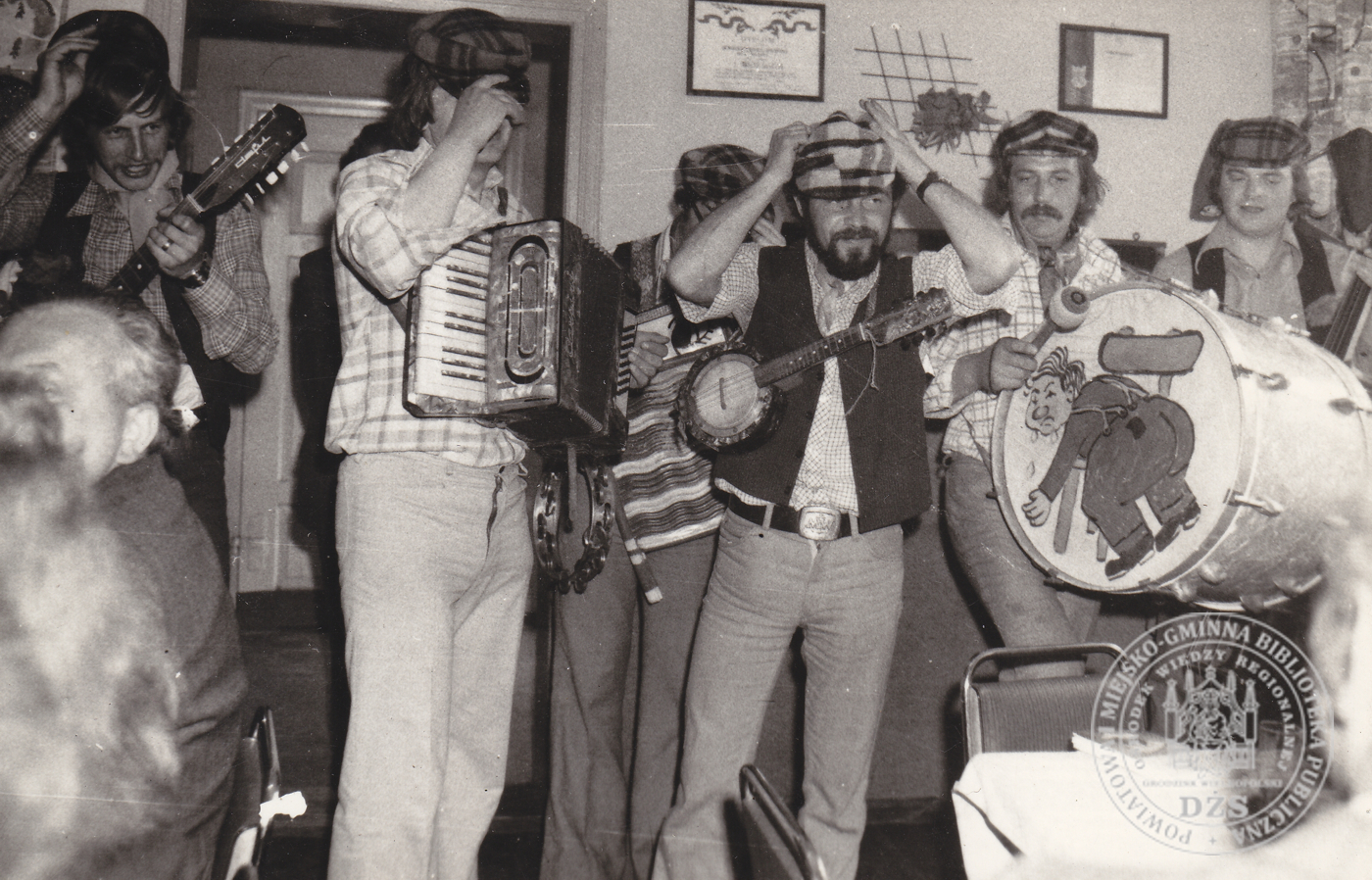 Grodziska Kapela Podwórkowa w Kąkolewie. Występ w Klubie Rolnika prowadzonym przez Panią Zofię Pucicką (Kier. Biblioteki)